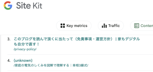 ブログのアクセス状況を確認しようと、WordPress管理画面に入れているGoogle Site Kit(GA4連携プラグイン)を眺めていたところ、ページタイトルの一覧に不思議な表示を見つけました。