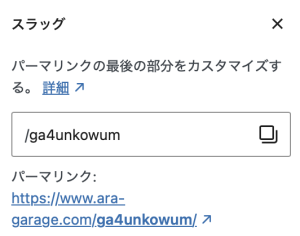 スラッグとは、記事のURLの末尾部分のことです。たとえばこのブログであれば: